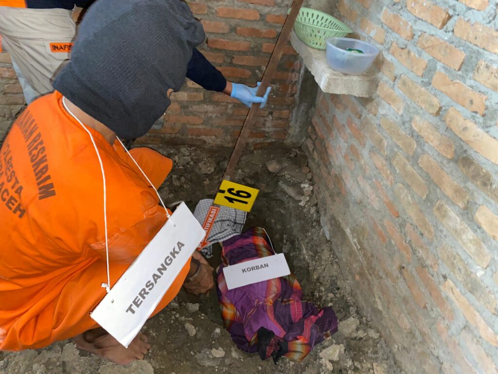 Analisaaceh.com, Banda Aceh | Satuan Reskrim Polresta Banda Aceh menggelar rekonstruksi (reka ulang) pembunuhan yang dilakukan HH (49) warga Lam Hasan, Kecamatan Peukan Bada, Aceh Besar pada Rabu (26/1/2022).