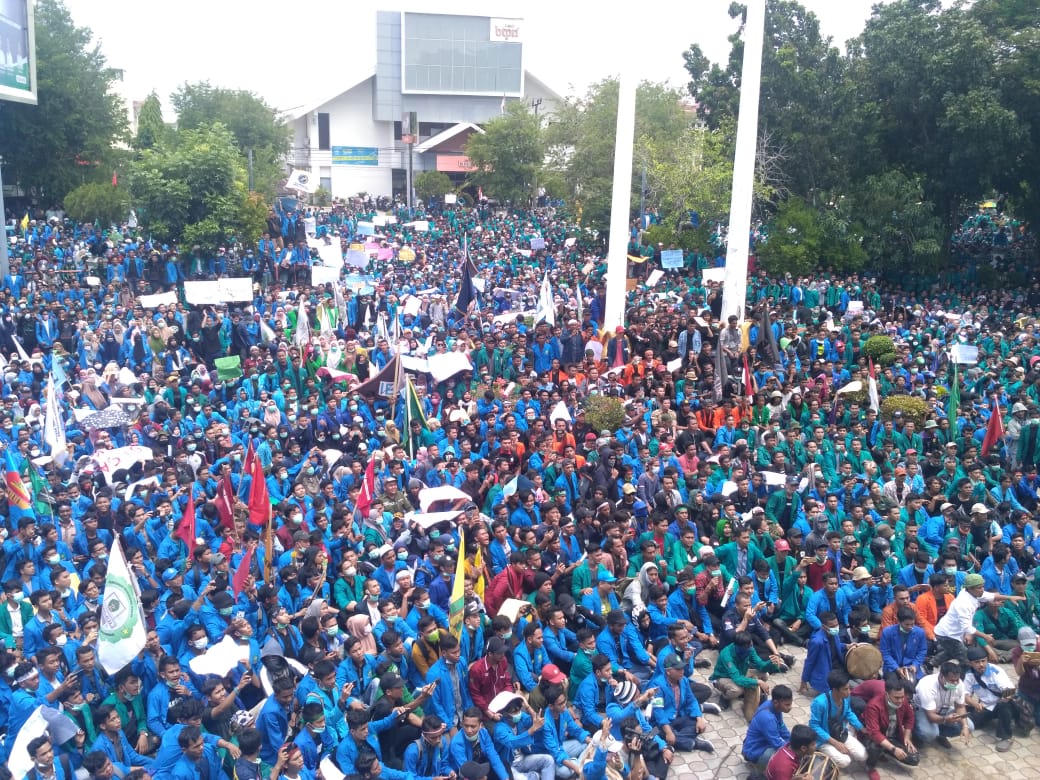 Analisaaceh.com, Banda Aceh | Ribuan mahasiswa dari berbagai kampus di Aceh lakukan aksi unjuk rasa di Bundaran Simpang 5 dan kantor Dewan Perwakilan Rakyat Aceh (DPRA), Kamis (26/9/2019).