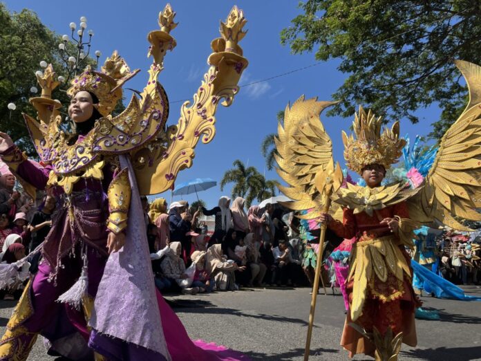 Setiap kelompok menghadirkan atraksi berbeda, mulai dari busana adat, musik, hingga replika kreatif yang membuat penonton tak henti-hentinya bertepuk tangan.