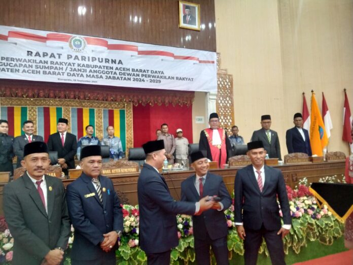 Analisaaceh.com, Blangpidie | Roni Guswandi ditunjuk sebagai Ketua Sementara Dewan Perwakilan Rakyat Kabupaten (DPRK) Aceh Barat Daya (Abdya) periode 2024-2029 dalam rapat Paripurna di Gedung DPRK Blangpidie, Senin (9/9/2024).