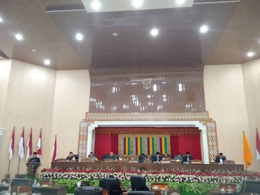 Rapat paripurna penetapan pimpinan definitif DPRK Abdya dipimpin Ketua sementara, Roni Guswandi, didampingi Wakil Ketua sementara, Tgk. Mustiari, serta dihadiri anggota DPRK dan Pj Bupati Abdya, Sunawardi.