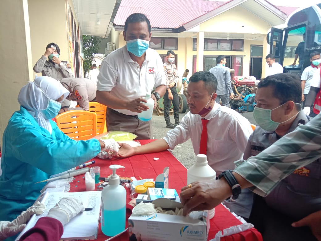 Analisaaceh.com, Pidie Jaya | Mapolres bersama Palang Merah Indonesia (PMI) Pidie Jaya didukung oleh Socalatte gelar donor darah untuk mengantisipasi kekurangan stok darah di RSUD Pidie Jaya pada masa darurat Covid-19.