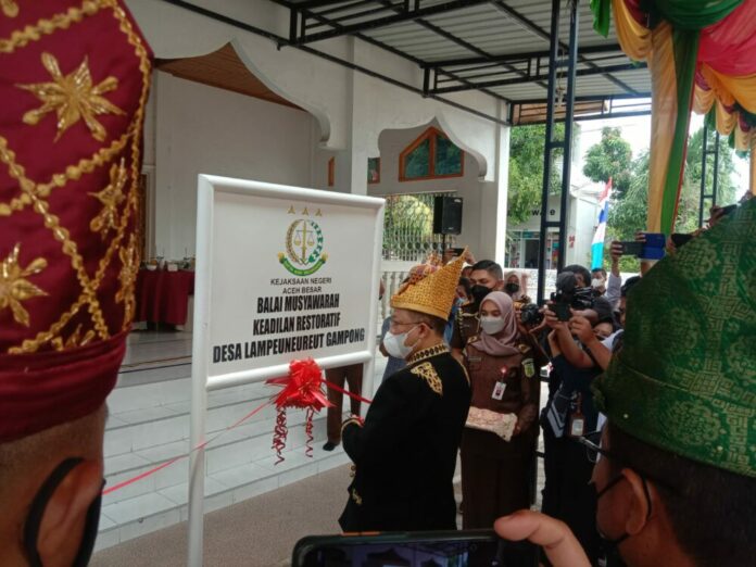 Analisaaceh.com, Aceh Besar | Jaksa Agung RI, Burhanuddin meresmikan secara serentak Rumah Restorative Justice di seluruh Indonesia dan termasuk di Desa Lampeunurut Gampong, Kecamatan Darul Imarah, Aceh Besar.