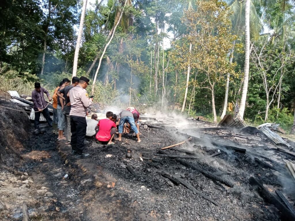 Kebakaran rumah di Dusun Buket Linteng Desa Paya Pasi Kecamatan Julok, Kabupaten Aceh Timur pada Senin (18/7/2022).
