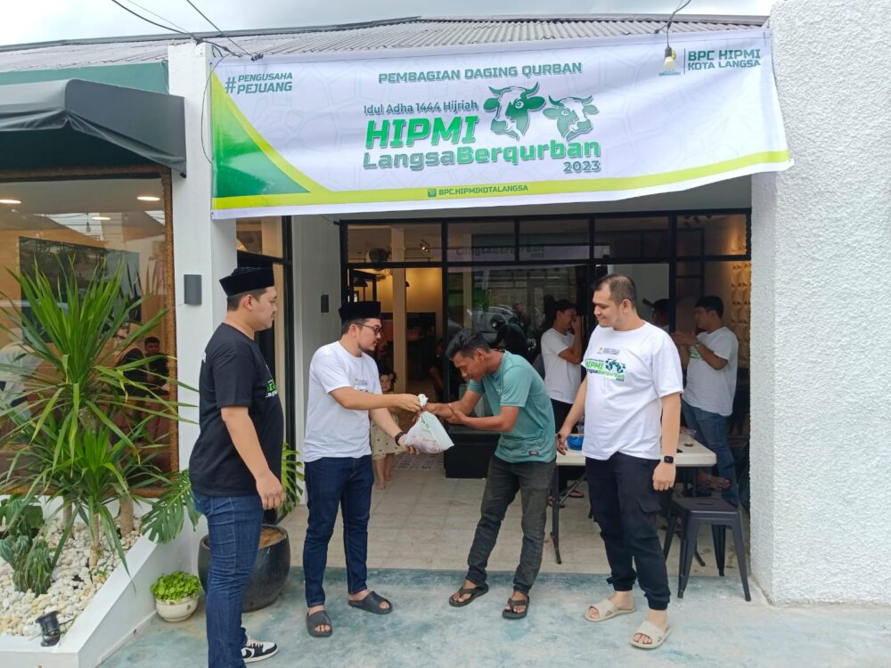 Analisaaceh.com, Langsa | Badan Pengurus Cabang (BPC) Himpunan Pengusaha Muda Indonesia (HIPMI) Kota Langsa melaksanakan ibadah qurban pada Hari Raya Idul Adha 1444 Hijriah, dengan menyembelih tiga ekor sapi, Jum’at (30/6/2023).