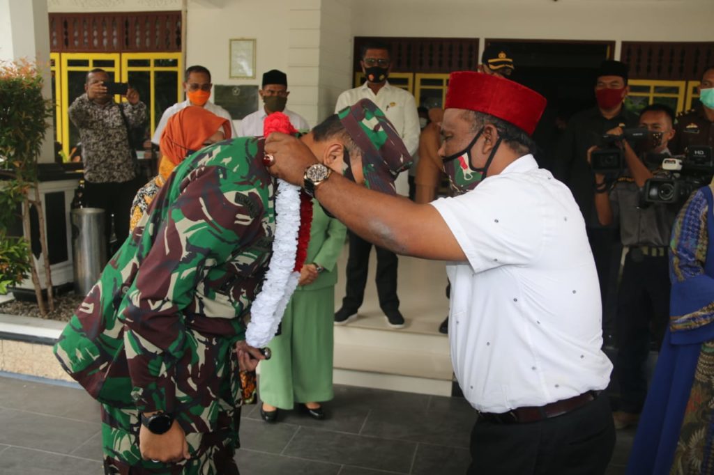 Analisaaceh.com, Sigli | Bupati Pidie Roni Ahmad, SE (Abusyik) menegaskan bahwa berkomitmen untuk tetap menjaga perdamaian di Aceh. Hal tersebut diungkapkan dalam menyambut kunjungan kerja Danrem 011/Lilawangsa, Kolonel Inf Sumiranting Baskoro, SE di pendopo Bupati setempat, Rabu, (8/7/2020).