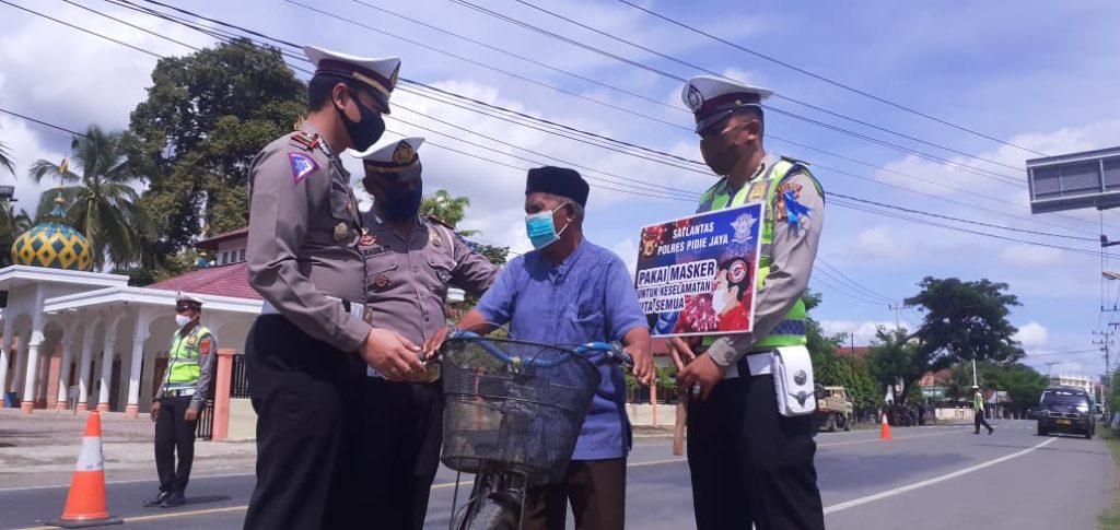 Analisaaceh.com, Meureudu | Satuan Lalu Lintas Polres Pidie Jaya menggelar Operasi Patuh Seulawah 2020 di Jalan Banda Aceh – Medan Simpang Tiga Meureudu Kabupaten setempat, Jumat (24/7/2020).