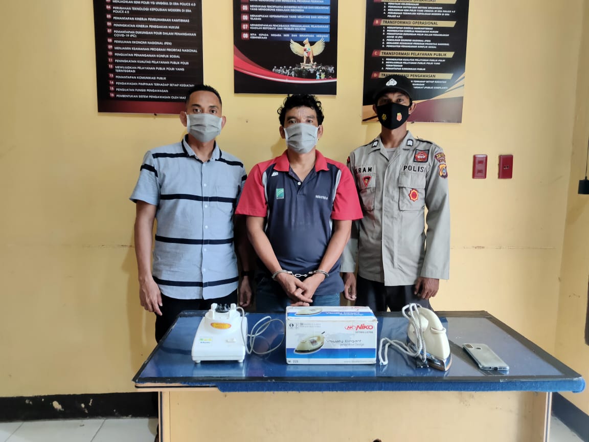 “Pelaku berniat menjual Blender dan Setrika itu, namun ditolak, dari situlah karena masih satu kampung, hal itu diketahui korban saudara Putra Juliandi (35) yang merasa barang elektronik yang ditawarkan tersangka merupakan barang miliknya yang hilang, hingga kemudian membuat laporan ke Polsek,” ujar Iptu Erwinsyah, Selasa (29/6/2021).
