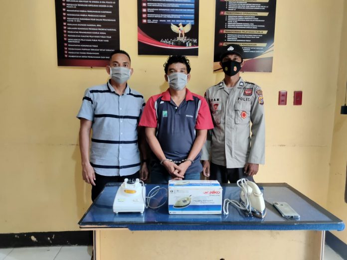 Kapolres Aceh Utara AKBP Tri Hadiyanto, S.I.K melalui Kapolsek Langkahan Iptu Erwinsyah Putra mengatakan, kasus pencurian yang dilakukan tersangka I terungkap saat dirinya menawarkan sebuah Setrika dan Blender kepada seorang Ibu Rumah Tangga.