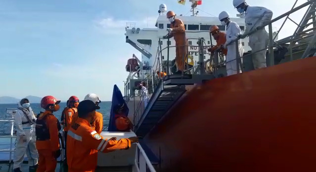 Kemudian pada pukul 08.45 WIB, KN SAR Kresna berhasil sandar dengan MT. Concerto untuk melakukan evakusi korban.