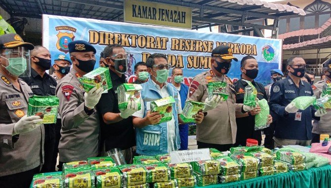 Pada hari Sabtu (15/8/2020) sekira pukul 04.30 Wib, Dit Resnarkoba Polda Sumut melakukan penangkapan tersangka HW di Jalan Kali Baru Barat 7 Jakarta dan disita barang bukti berupa tiga karung plastik yang berisi 50 bungkus teh Cina berisikan narkotika jenis sabu dengan berat keseluruhan seberat 50 kg.