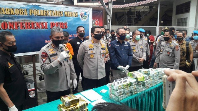 Didampingi Dir Narkoba Polda Sumut, Kombes Pol Robet Dacosta, Kapolrestabes Medan, Kombes Pol Riko Sunarko, Jenderal Bintang Dua itu menyebutkan, pengungkapan ini berawal dari penangkapan terhadap tersangka berinisial IH, di Jalan Sisingamangaraja, Medan, 21 Mei 2020 lalu.
