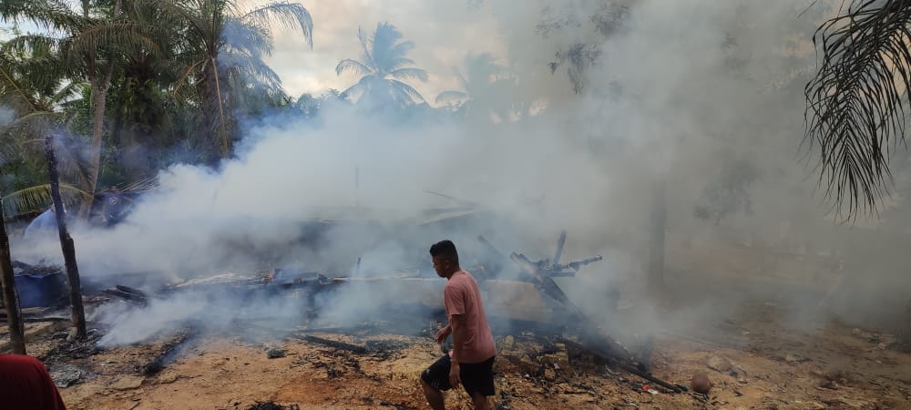 Korban bersama warga setempat kemudian mencoba memandam api dengan alat seadanya.