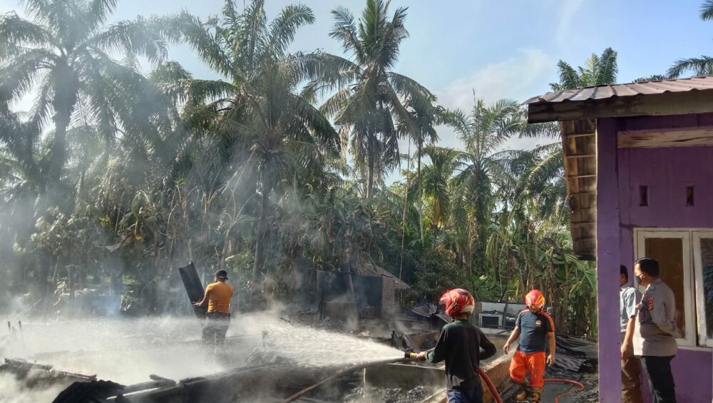 Rumah warga di Dusun Pandai Besi, Kampung Gedung Biara, Kecamatan Seruway, Aceh Tamiang, ludes terbakar pada Sabtu (30/04/2022).