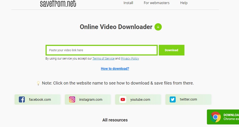 SaveFrom ini bisa membantu dalam mengunduh video YouTube, Twitter, Instagram, Facebook hanya dengan memasukkan URL video dan mengklik Unduh.