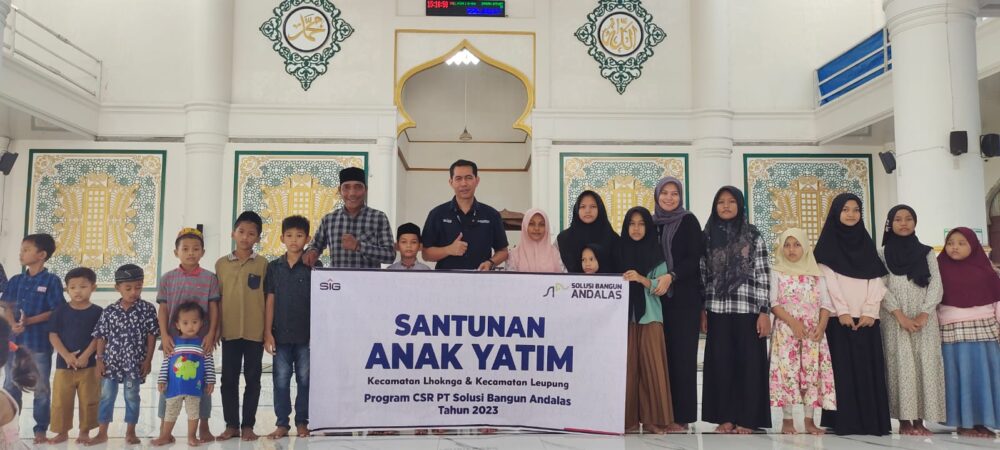 Menyambut Hari Raya Idulfitri 1444H, PT Solusi Bangun Andalas (SBA) kembali menyelenggarakan beberapa kegiatan amaliah Ramadan bersama masyarakat berupa pemberian santunan kepada anak yatim dari 34 desa di Kecamatan Lhoknga dan Kecamatan Leupung sejumlah 242 orang. Pemberian santunan dan bantuan di lakukan di Mesjid Kueh, Mesjid Lamlhom, Mesjid Lampuuk, Mesjid Lhoknga dan mesjid kemukiman Leupung, 18 April 2022, yang disaksikan oleh para Imuem Mukim, pengurus mesjid kemukiman, Komite Pelaksana Pemberdayaan Masyarakat serta tokoh masyarakat setempat.