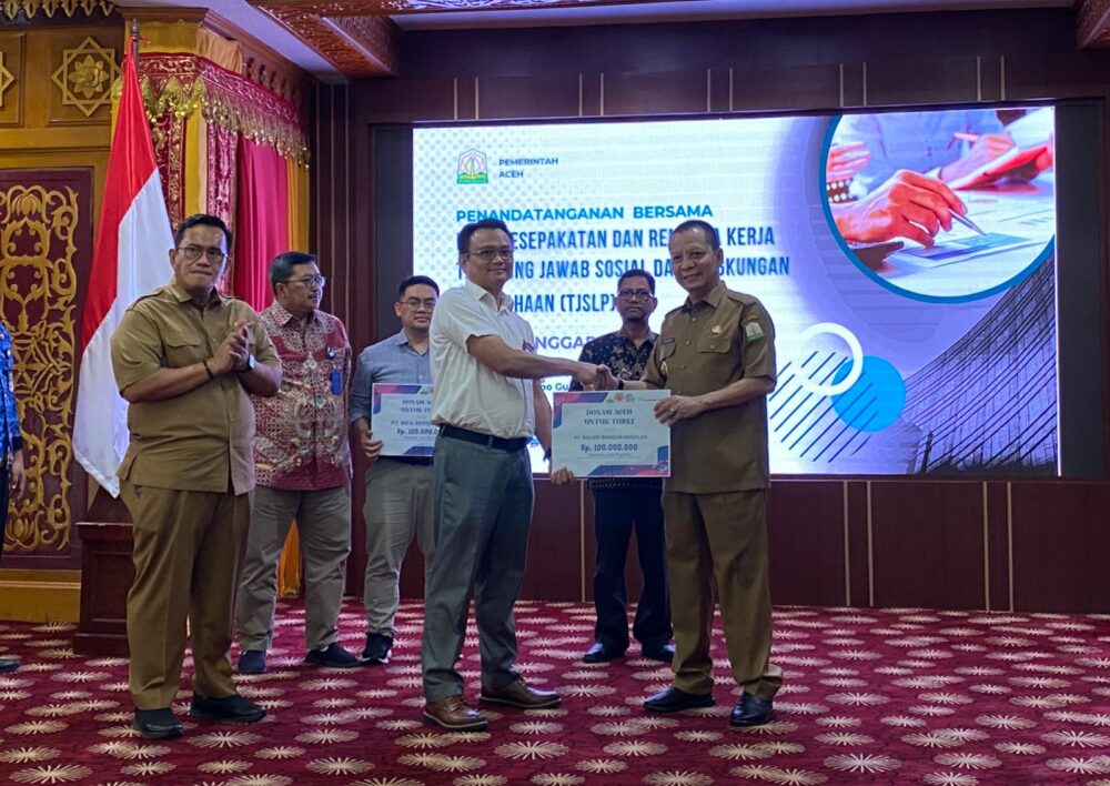 Bantuan diserahkan oleh General Manager SBA, Anwar Bakti kepada Pj. Gubernur Aceh, Achmad Marzuki, dan disaksikan oleh Sekda Aceh, Bustami Hamzah, Kepala Bappeda Aceh, H. T. Ahmad Dadek, SH., MH., dan tamu undangan lainnya di sela-sela acara penandatanganan Rencana Kerja Tanggung Jawab Sosial dan Lingkungan Perusahaan 2023.