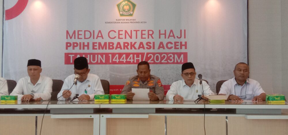 Ket foto : Konferensi pers terkait dengan keberangkatan Jamaah haji. Foto : Naszadayuna/analisaaceh.com