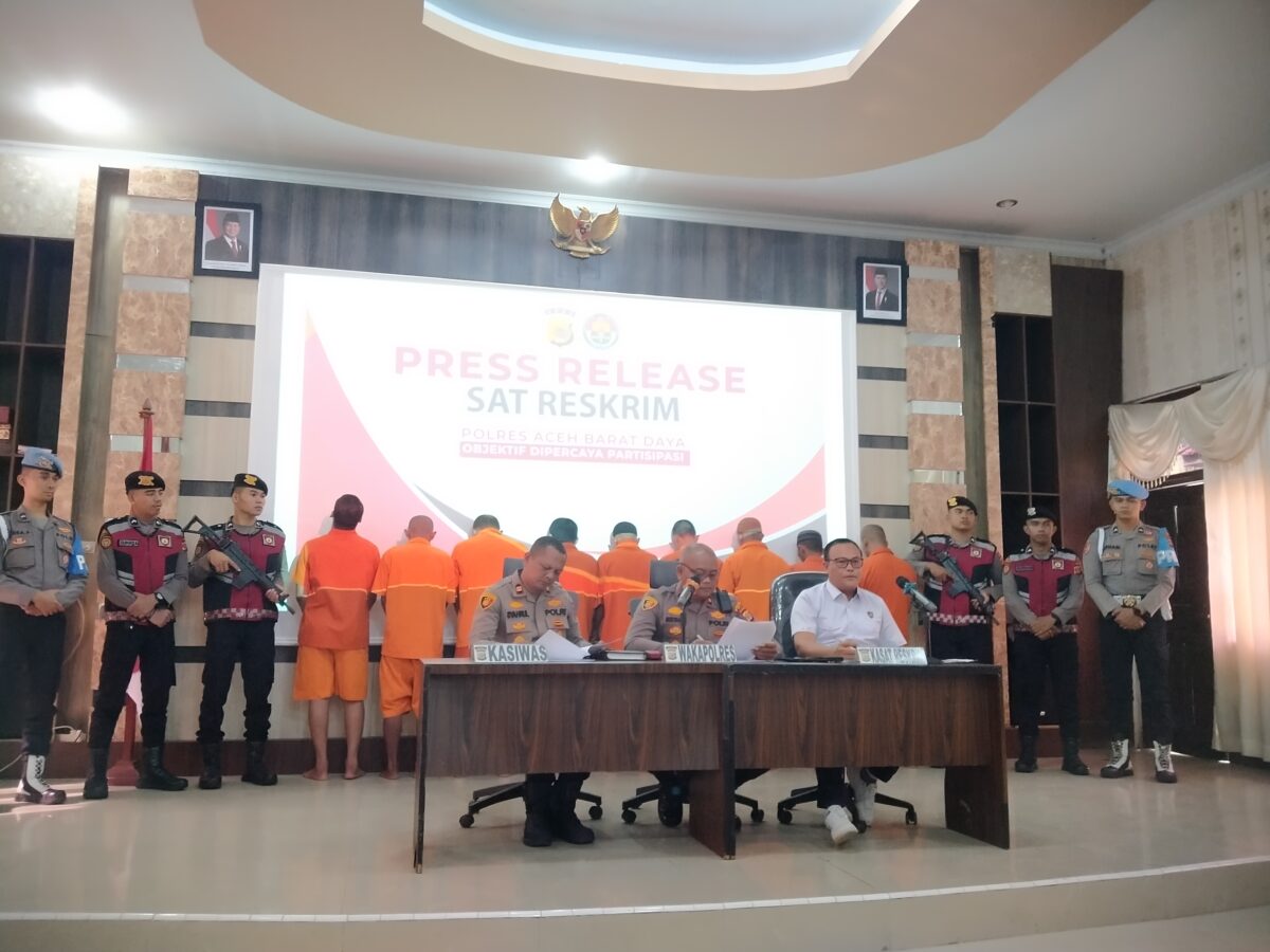 Konferensi Pers pengungkapan sejumlah kasus yang ditangani Satreskrim Polres Abdya yang berlangsung di Aula Mapolres setempat, Jum'at (2/5/2025). Foto:Analisaaceh.com/Ahlul Zikri