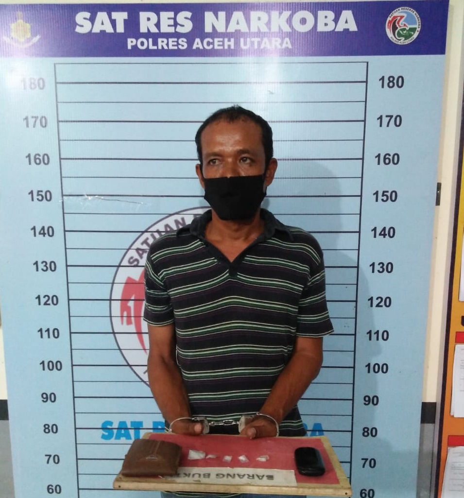 Analisaaceh.com, Lhoksukon | Seorang pria yang diduga pengedar narkotika jenis sabu berhasil ditangkap oleh Satuan Reserse Narkoba Polres Aceh Utara, Sabtu (17/10/2020).