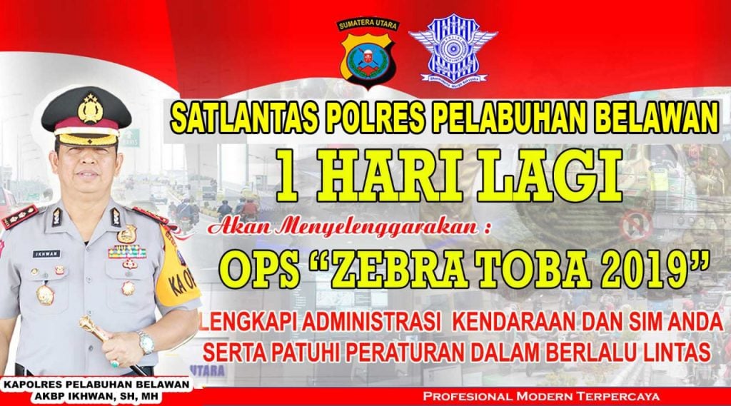 Kapolres Pelabuhan Belawan, AKBP Ikhwan mengatakan mulai esok hari Satlantas Polres Pelabuhan Belawan akan melaksanakan Operasi zebra yang dilakukan serentak di seluruh Indonesia untuk itu pihaknya menghimbau kepada masyarakat khususnya di wilayah hukum Polres Pelabuhan Belawan untuk melengkapi surat-surat kendaraannya.