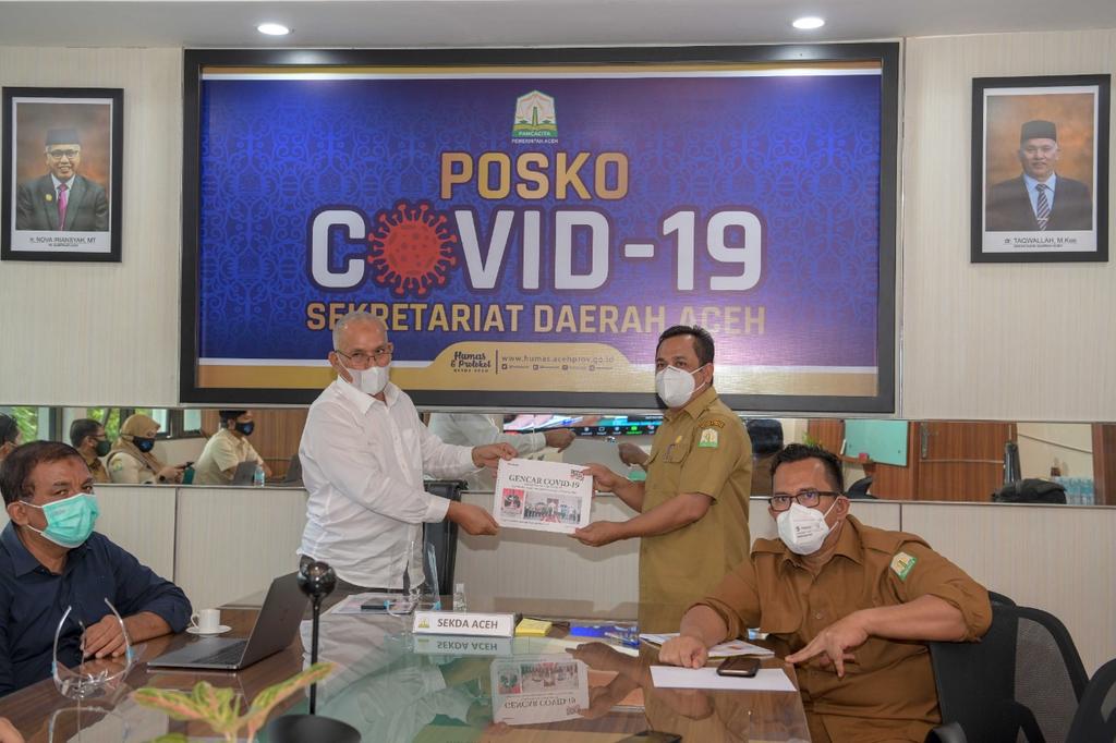 Peluncuran Gerakan Nakes Aceh Cegah Covid-19, dilakukan via konferensi video dan diikuti oleh seluruh Bupati/Wali Kota, Dinas Kesehatan kabupaten/Kota dan RSUD se-Aceh, di Ruang Rapat Sekda Aceh.