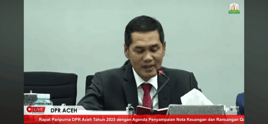 Sekda Aceh saat sidang paripurna, foto: tangkapan layar