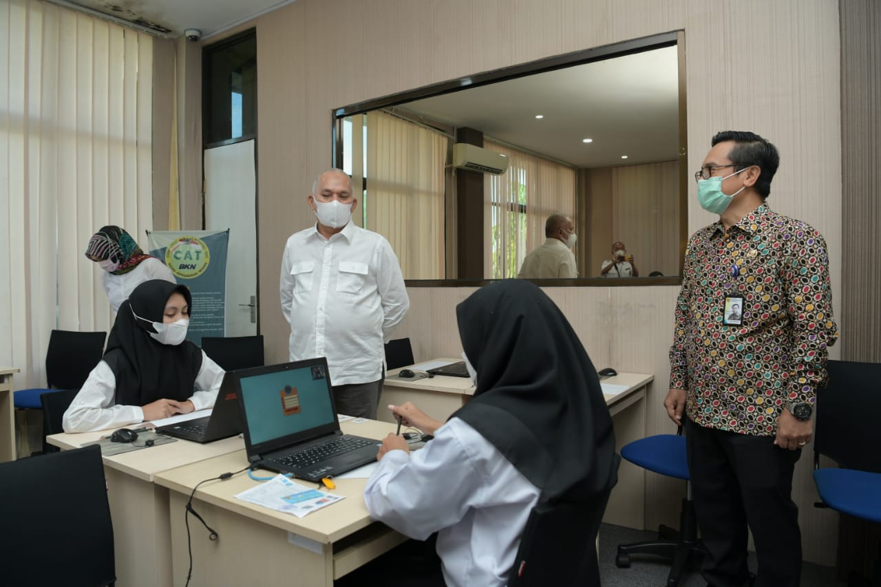 Analisaaceh.com, Banda Aceh | Sekretaris Daerah (Sekda) Aceh, Taqwallah, memantau langsung pelaksanaan Seleksi Kompetensi Dasar (SKD) calon praja Institut Pemerintahan Dalam Negeri (IPDN) Tahun 2021 di Aceh, yang dilaksanakan di Kantor Regional BKN XIII Aceh, Rabu, (16/6/2021).