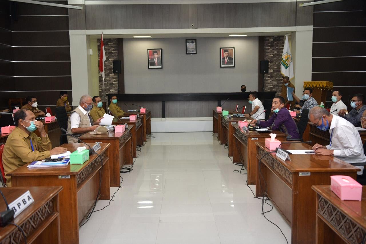 Analisaaceh.com, Banda Aceh | Sekretaris Daerah Aceh Taqwallah, memaparkan perkembangan terkini terkait penanganan Corona Virus Disease 2019 (Covid-19) yang telah dan akan dilakukan oleh Gugus Tugas Covid-19 Aceh serta menjelaskan penggunaan Biaya Tak Terduga, pada Rapat Koordinasi Penanganan Covid-19 dengan Dewan Perwakilan Rakyat Aceh, di ruang serbaguna komplek DPRA, Senin (4/5/2020).