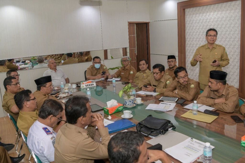 Sekretaris Daerah Aceh, Taqwallah, menggelar rapat teknis Musrenbang kabupaten/kota bersama Kepala SKPA terkait, di Ruang Rapat Sekda Aceh, Selasa, 10/3.