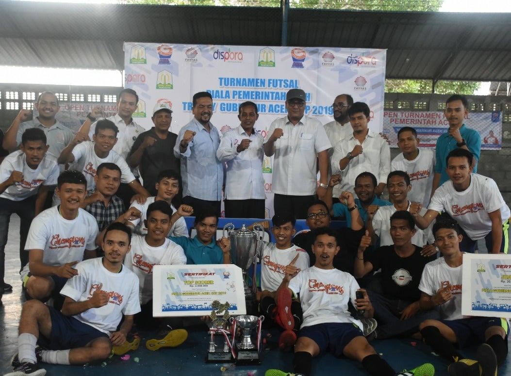 Tim TEAMPHAN RK berhasil membungkam Tim SAFA dengan scor telak 5 – 2 dan berhak menjuarai Turnamen Futsal Piala Gubernur Aceh yg diselenggarakan mulai Tgl 27 sampai 31 Juli 2019 di lapangan “Fair Play” Seutui, Banda Aceh, sementara untuk juara ke tiga diraih oleh Tim YOUNG STONE setelah menekut Tim HIPMI Aceh dengan 4 – 1.