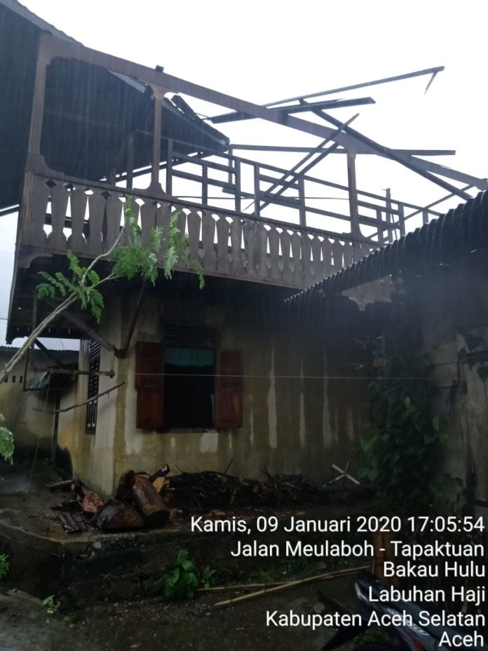 ANALISAACEH.COM, TAPAKTUAN | Selain banjir, angin Puting Beliung juga landa Kecamatan Labuhan Haji Kabupaten Aceh Selatan, Kamis (09/01/2020).