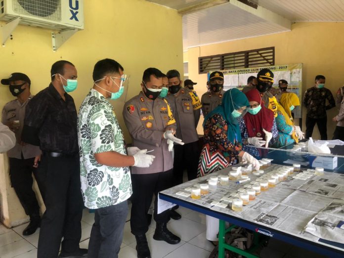 Personel Polres Pijay sedang melakukan pemeriksaan urine pada Rabu (4/11)