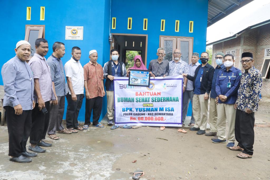 Direksi PT PIM menyerahkan bantuan 1 unit Rumah Sehat Sederhana kepada warga Paloh Gadeng, Kecamatan Dewantara, Aceh Utara yang bertepatan dengan Dirgahayu RI ke76, Senin (16/8/21)