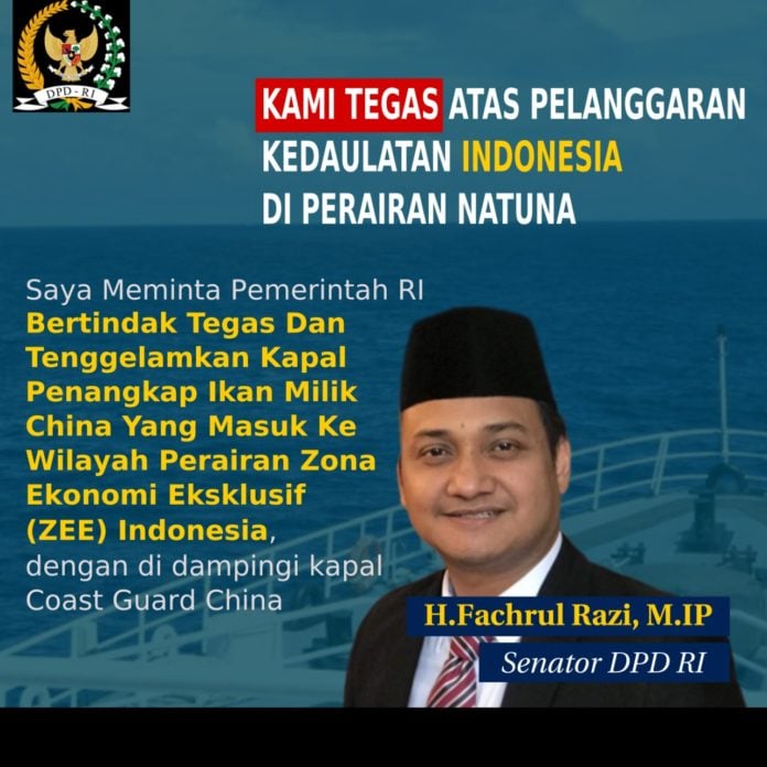 Anggota DPD RI Asal Aceh Fachrul Razi menegaskan atas pelanggaran kedaukatan Indonesia di Perairan Natuna.
