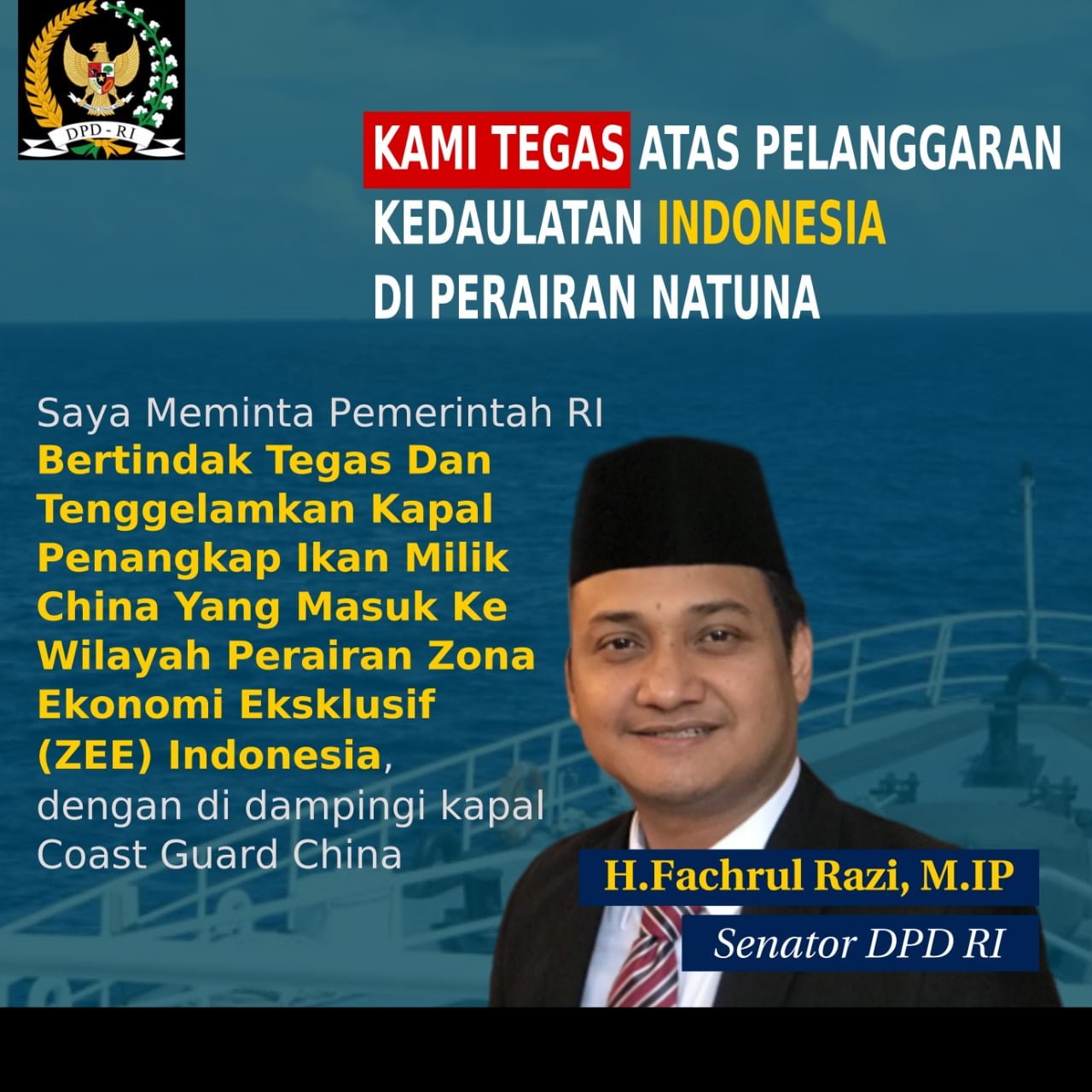 Senator Fachrul Razi Meminta Pemerintah RI Bertindak Tegas Atas Kedaulatan NKRI di Perairan Natuna