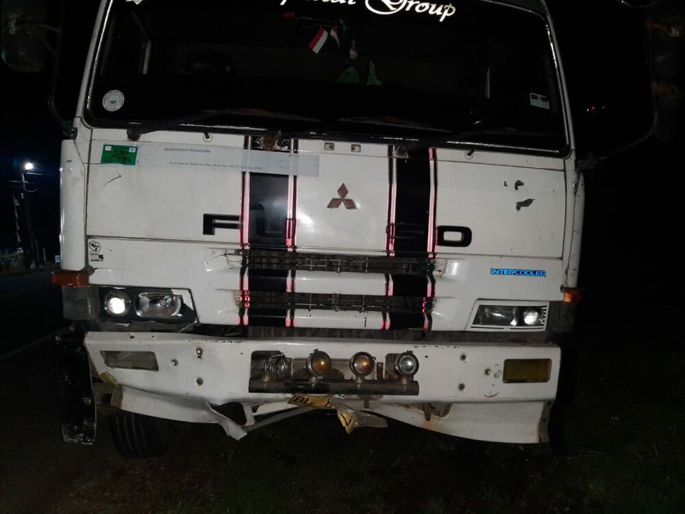 “Maulana meninggal dunia di lokasi kejadian karena terlindas ban depan mobil truck sebelah kanan, sementara Zulkifli mengalami luka ringan,” jelas Ipda Jasman.