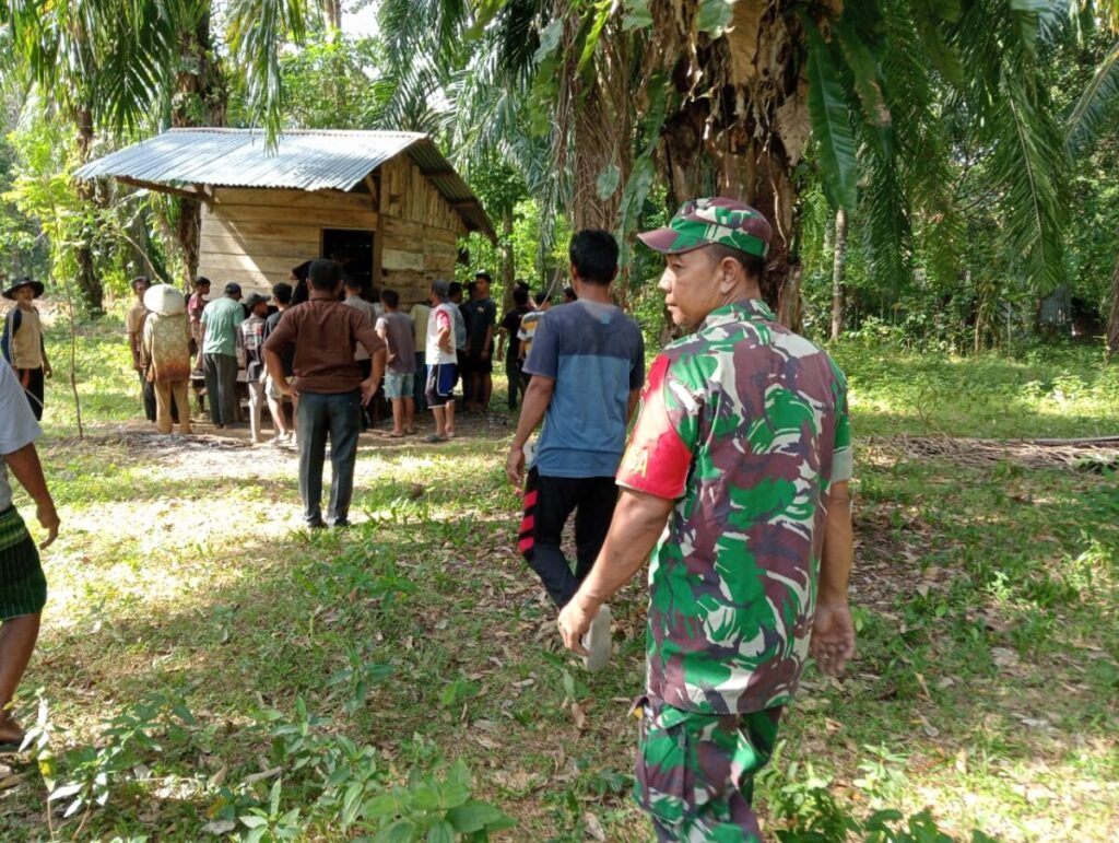 Warga saat mengevakuasi jasad korban, di sawung milik warga Gampong Pusu Ingin Jaya, Kecamatan Manggeng, Kabupaten Abdya. Foto: Ist