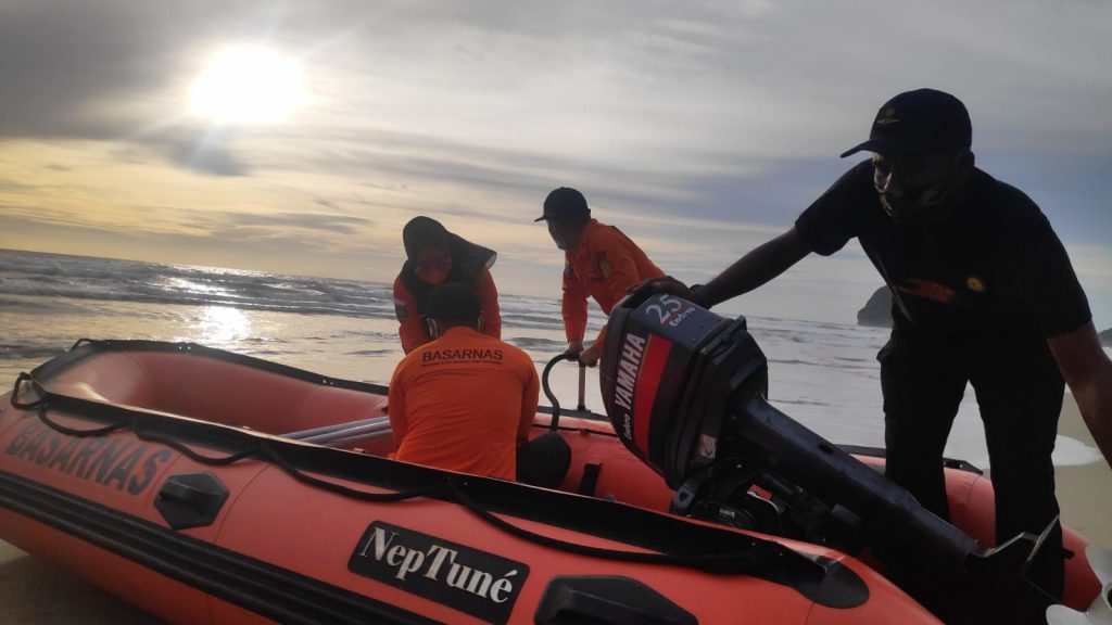 Tim SAR sedang melakukan pencarian terhadap korban tenggelam di Pantai Penyu Leupung pada Selasa (14/9/2021) sore.