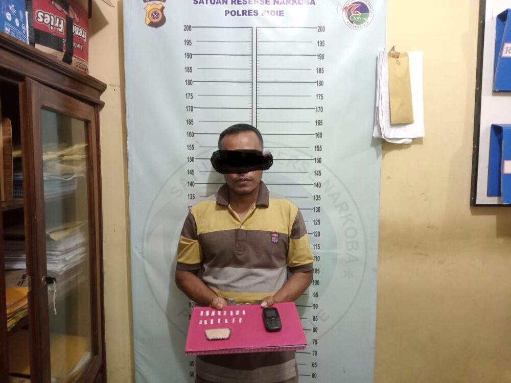 Kapolres Pidie, AKBP Imam Asfali, S.I.K., melalui Kasat Res Narkoba, AKP Rahmat, S.H., mengatakan, tersangka berinisial M (33) warga Gampong tersebut yang ditangkap berdasarkan informasi dari masyarakat setempat.