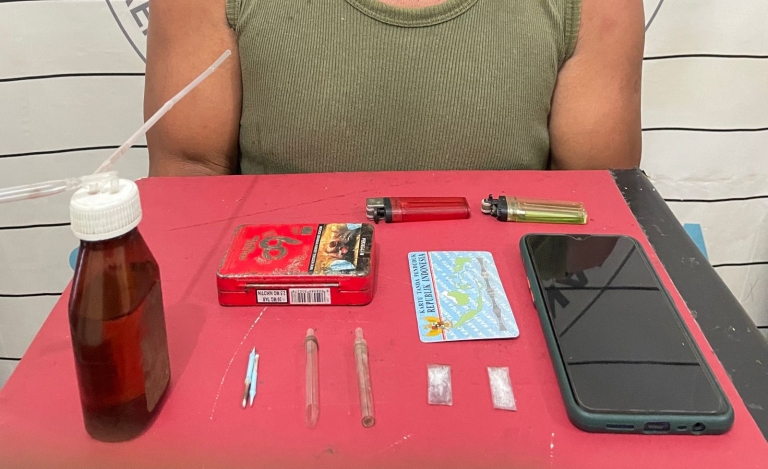 Saat dilakukan penggeledahan, petugas menemukan dua paket sabu dengan berat keseluruhan 0,44 gram, dua buah kaca Pirex, satu buah bong atau alat isap dan satu unit Handphone merk Oppo warna Biru.