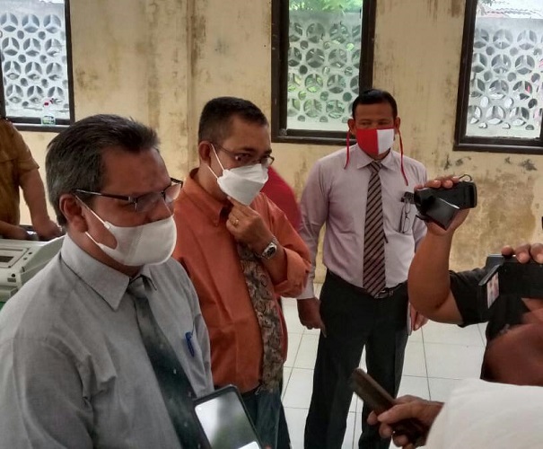 Ketua BPSK Aceh Utara, Fadly SE didampingi Wakil Ketua Hamdani dan Anggota Rusli SE usai sidang putusan pelanggan versus Telkomsel di Lhokseumawe, Senin (5/7/21