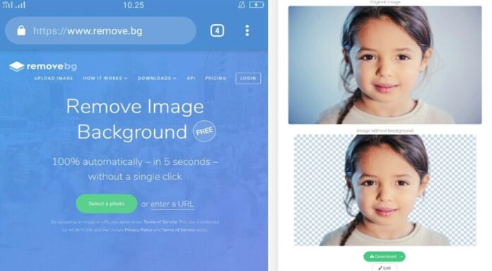 Pilihan pertama untuk hapus background adalah remove.bg. Selain menghapus background foto, Remove.bg juga bisa digunakan untuk mengedit foto yang backgroundnya sudah dihapus agar semakin bagus. Proses editnya juga sangat cepat, dalam hitungan beberapa detik latar belakang foto sudah hilang.