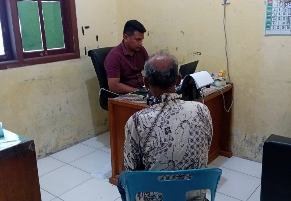 Polisi saat melakukan pemeriksaan terhadap pelaku pencabulan bocah laki-laki di Aceh Besar