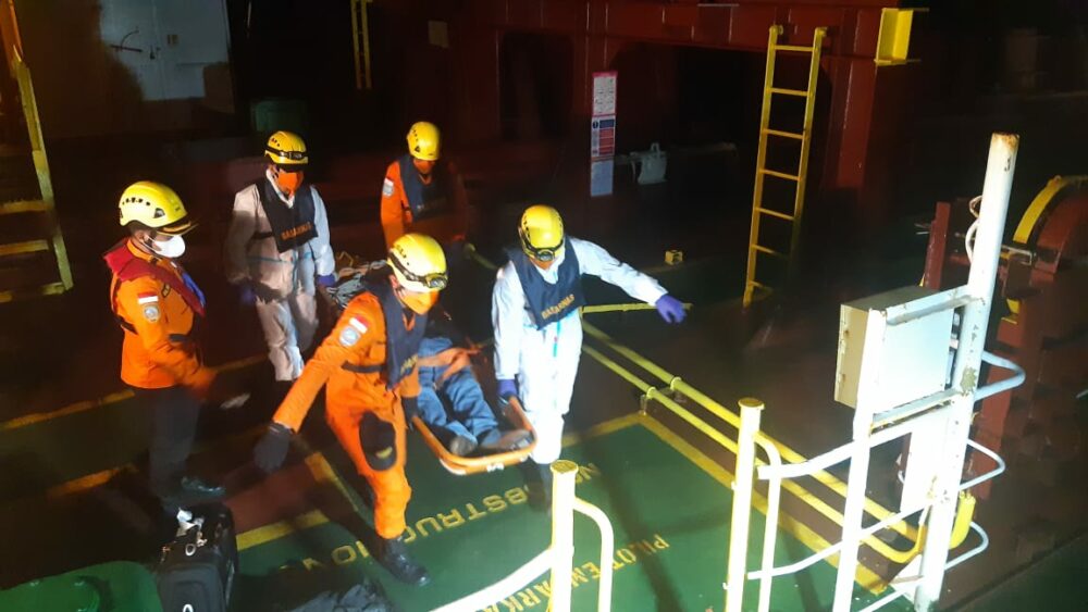 Analisaaceh.com, Banda Aceh | Seorang crew Kapal MV. Mairini dievakuasi Tim SAR karena mengalami stroke di perairan Selat Benggala, Kabupaten Aceh Besar, Kamis (19/5/2022) malam.