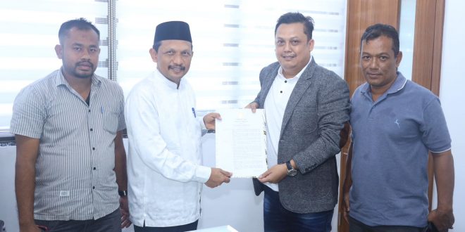 Analisaaceh.com, Banda Aceh | Asisten I Sekda Aceh bidang Pemerintahan dan Keistimewaan Aceh, M Jafar, menyerahkan surat keputusan (SK) pengangkatan Ketua Badan Reintegrasi Aceh (BRA) yang baru kepada Suhendri, di Kantor Gubernur Aceh, Jumat, (25/11/2022).