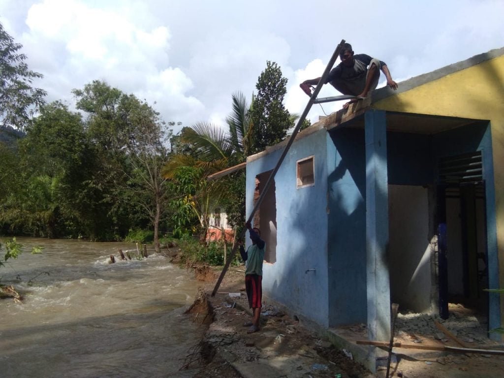 ANALISAACEH.COM, TAPAKTUAN | Abrasi sungai Mokap di Kecamatan Kluet Timur, Kabupaten Aceh Selatan semakin mengganas, akibatnya satu unit rumah milik Marsidin warga Dusun Tapak Aulia Gampong Lawe Cimanok, terpaksa dibongkar warga yang dibantu oleh anggota Koramil 13/Kluet Timur dan anggota Polsek setempat.