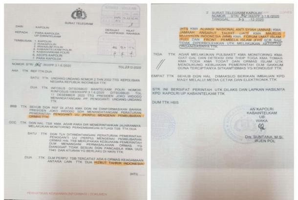 Hal itu berdasarkan Surat Telegram (STR) Kapolri Jenderal Idham Azis terkait pembubaran sejumlah ormas beredar di media sosial.