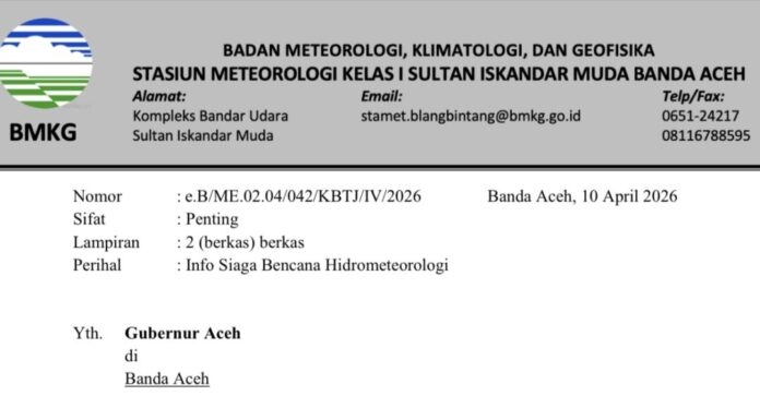 Artikulli tjetërBMKG Peringatkan Siaga Bencana Hidrometeorologi Aceh