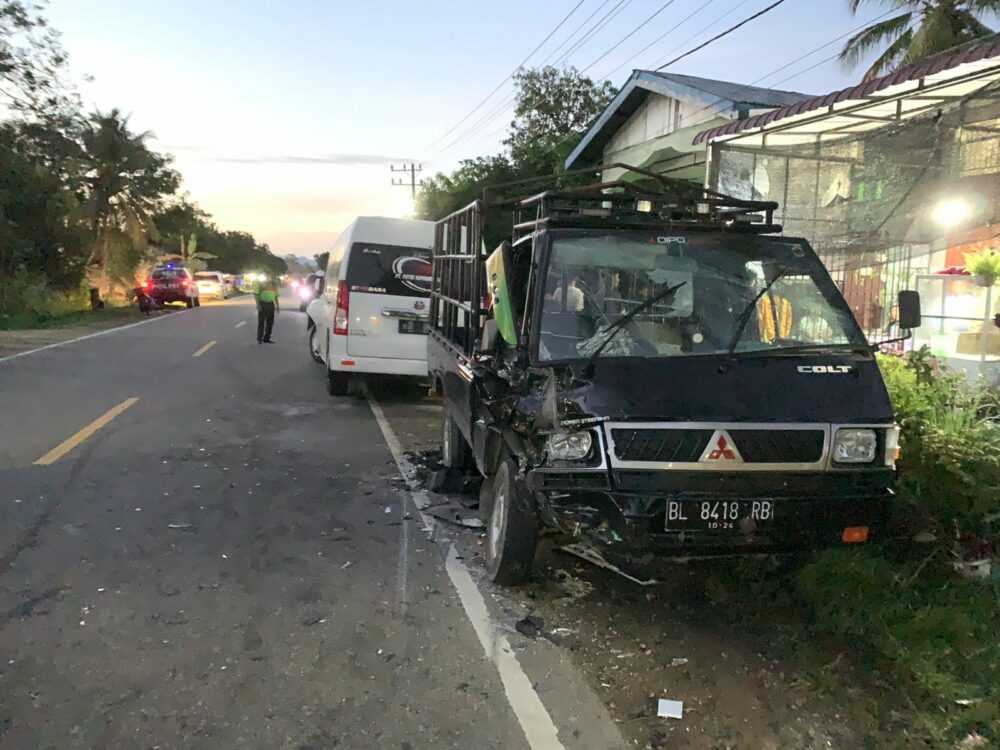 Kecelakaan beruntun di jalan lintas Balangpidie - Tapaktuan, Gampong Cinta Makmur Kecamatan Setia Kabupaten Aceh Barat Daya (Abdya), Senin (13/6/2022)